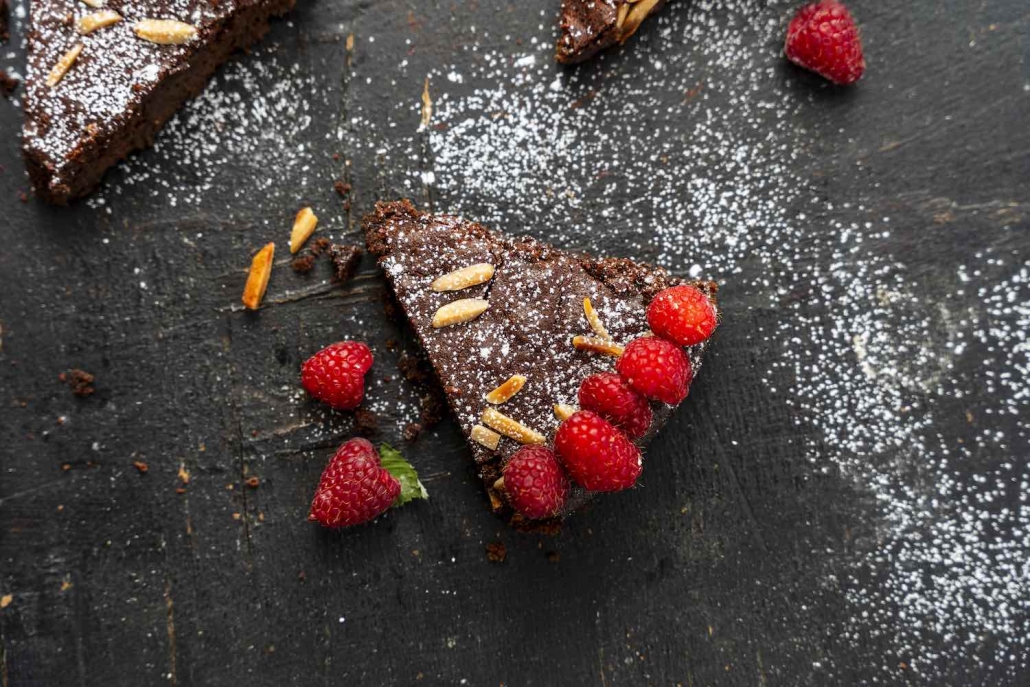 Pour into the prepared pan and smooth the top. Sprinkle with sliced or slivered almonds. Bake for approximately 40 minutes, or until the torte is cooked and center bounces back when lightly touched. It’s better if it remains a little fudgy in the middle.