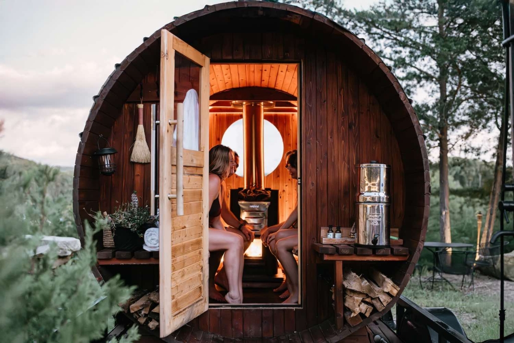 The cold plunge never gets easy, but it does get empowering. Afterward, I wrapped in a towel and sat by the fire, chatting with another first-time couple, all of us glowing and slightly giddy.