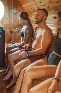 He handed us felt banya hats to keep our heads cool and poured water over hot stones, releasing a burst of steam known as Löyly (pronounced low-loo), a Finnish tradition that deepens the heat and invites reflection.