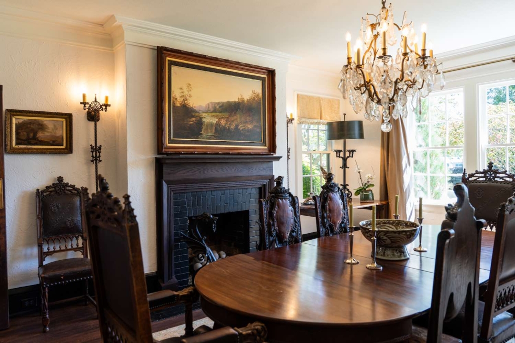 The dining room, set in a stand-alone room down a short hallway from the kitchen, is the scene for both family meals and dinner parties. It is here, in the dining room, where the Newnams’ dedication to preserving Raoulwood’s original features is on full display.
