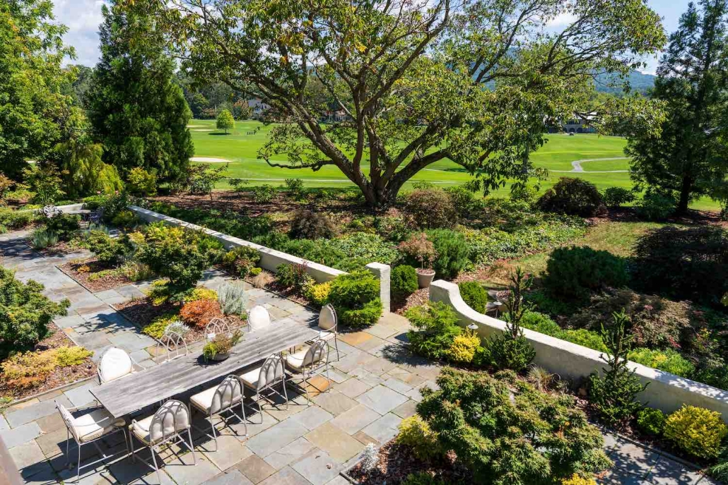 From the home’s ground floor, there is easy access to 31/2 acres of outdoor space that face both the golf course and Mount Pisgah—the latter of which can once again be viewed from the home following the loss of trees during Hurricane Helene. Four separate sets of doors—from the living room, main entrance hallway and family den—lead to outdoor patios and garden areas, beckoning anyone on the inside to enjoy the splendor of the outside.